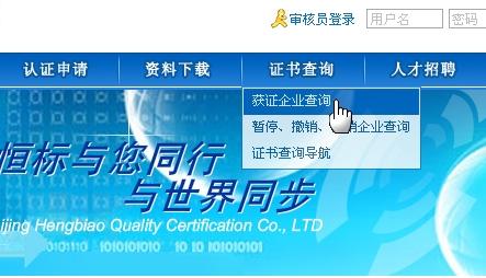 二、證書查詢方法 (一)通過恒標網站查詢 1、登陸m.lylqwl.com,進入北京恒標質量認證有限公司網站首頁;